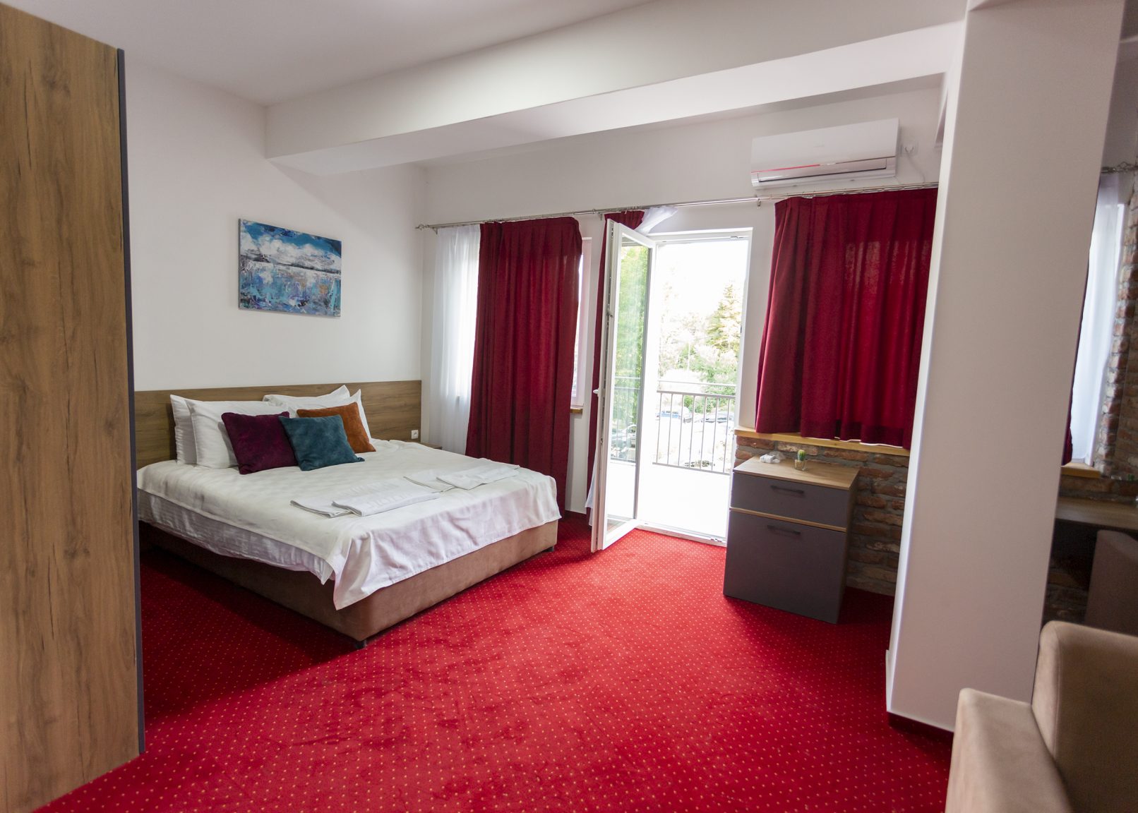 Елегантна и комфорна соба со голем брачен кревет, удобен душек и квалитетна прекривка. Во склоп на собата има ЛЦД ТВ, клима, wi-fi, како и тераса со беспрекорен поглед. Тука е и секогаш беспрекорната собна услуга.